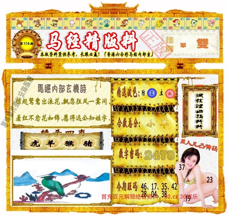| 114期:必中七肖→猪鼠兔鸡马狗牛 |